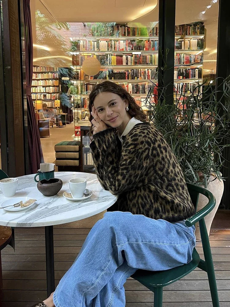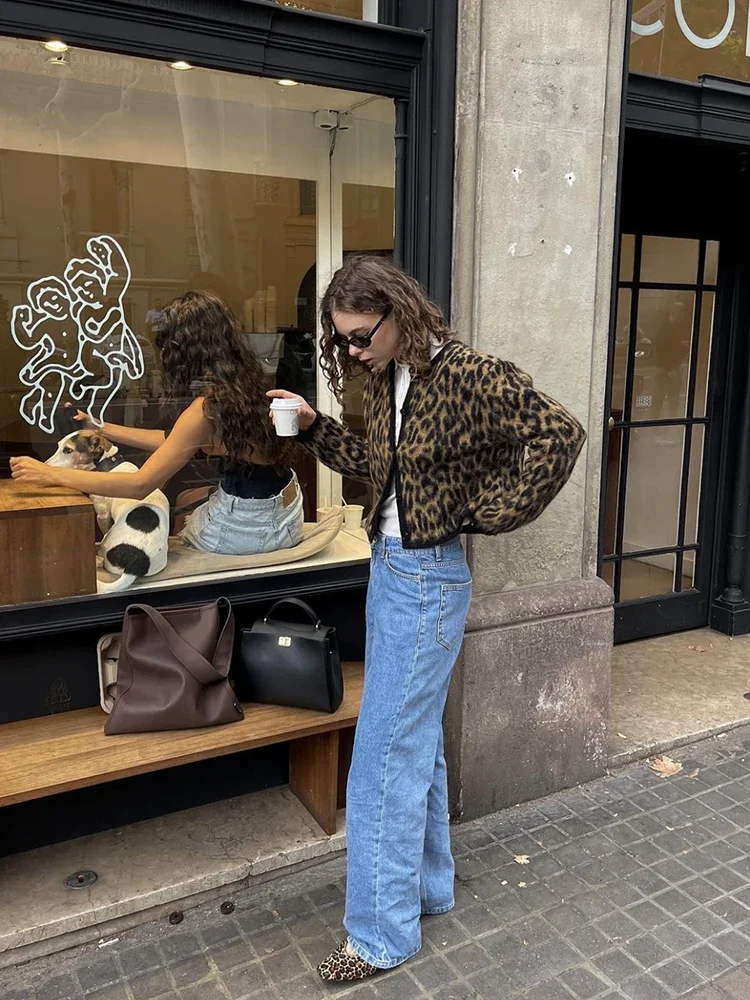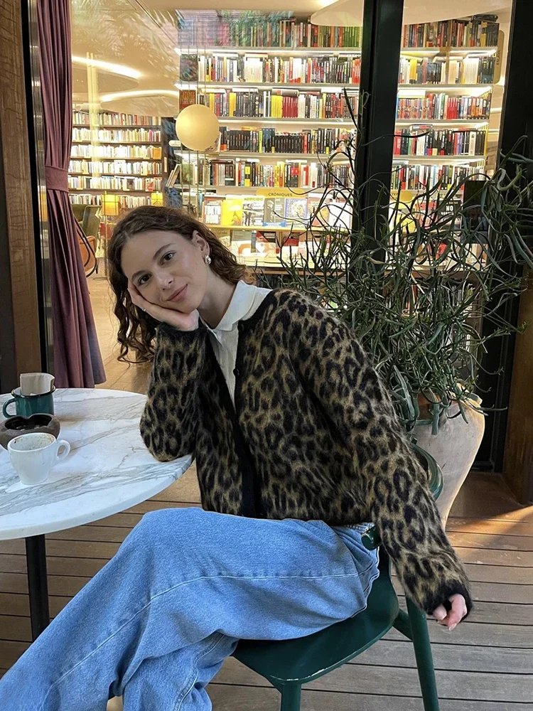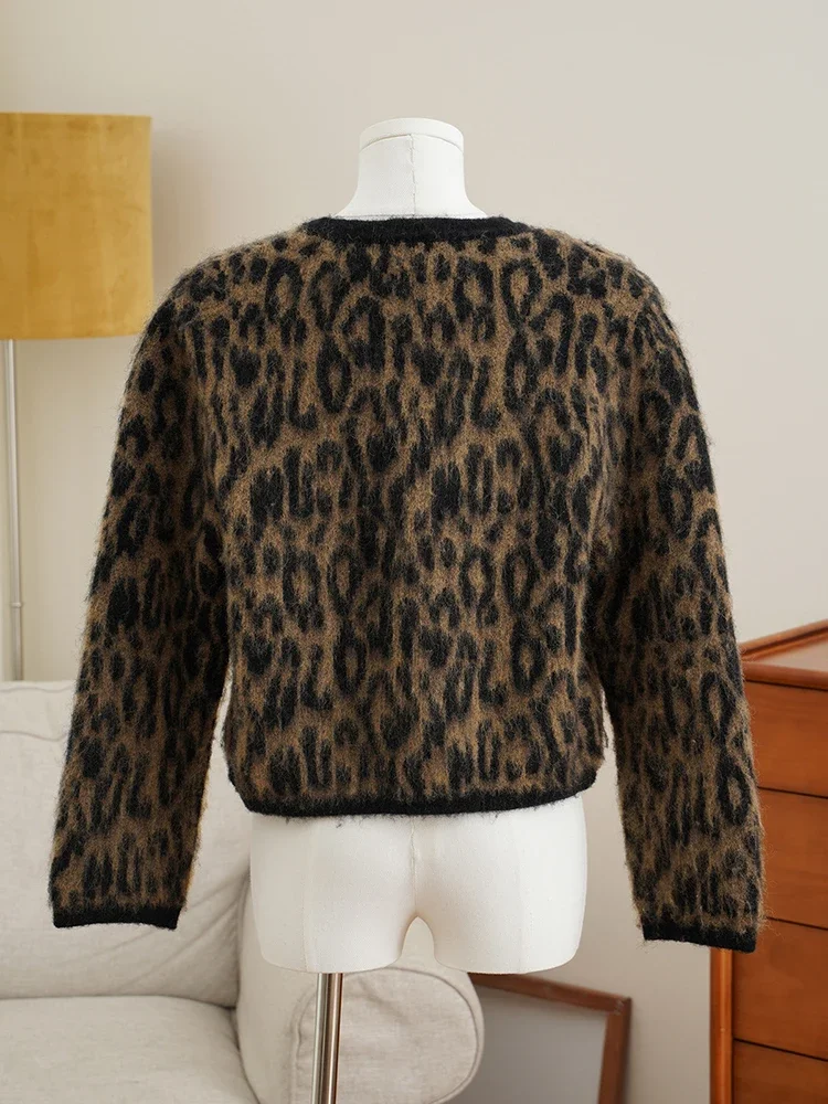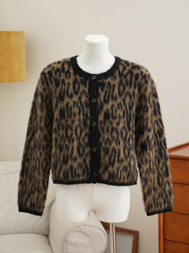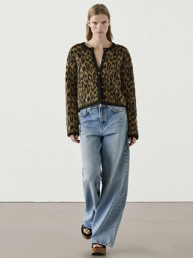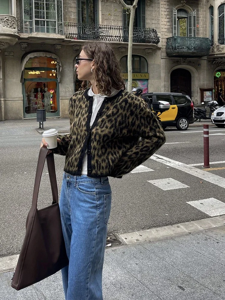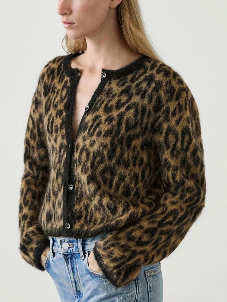 The bold leopard pattern adds a confident edge, while delicate button detailing enhances its fashionable charm. With full-length sleeves and a relaxed silhouette, this piece is ideal for layering or wearing on its own—perfect for anyone who loves combining comfort with standout style.